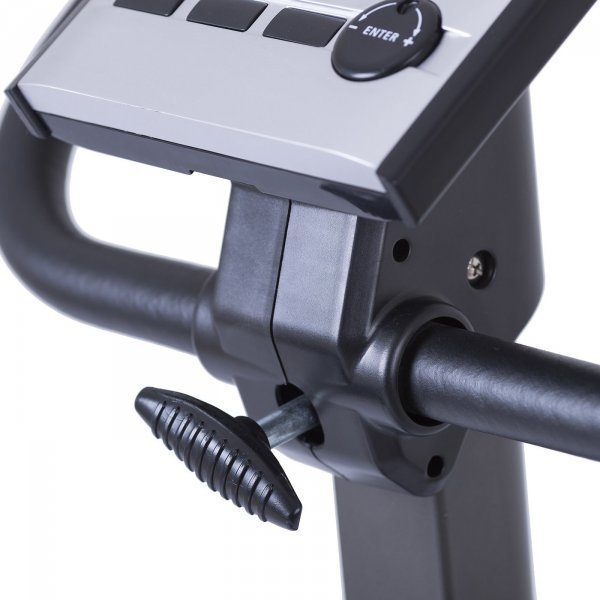 Měření tepové frekvence probíhá pomocí integrovaných dlaňových senzorů v rukojetích (hand pulsy). Počítač je vybaven systémem RECOVERY, který umí vyhodnotit v tzv. zklidňovací fázi po cvičení váš aktuální fyzický stav, měřený v závislosti na rychlosti poklesu tepové frekvence bezprostředně po dokončení tréninku. Pro přesnější a dlouhodobé měření tepové frekvence je vhodnější využít integrovaný přijímač a propojit rotoped bezdrátově hrudním pásem o frekvenci 5 kHz s přesností EKG. Hrudní pás je možné u nás dokoupit samostatně. edlo rotopedu lze horizontálně i vertikálně nastavit včetně jeho sklonu. Výškově lze nastavit sedlo v rozmezí 65 - 94 cm. Díky tomuto nastavení si na rotopedu zacvičí pohodlně každý bez ohledu na výšku, aniž by při šlapání trpěly kolena nebo záda. U řídítek lze nastavovat sklon. Profesionální šlapací střed je osazen kuličkovými ložisky a klikami na kónický čtyřhran, což zaručí dlouhou životnost stroje a plynulost jeho chodu. Pedály jsou opatřeny řemínky, které drží nohu bezpečně na šlapačce. Závit šlapačky má průměr standardních 14 mm a lze je tedy vyměnit za cyklistické.