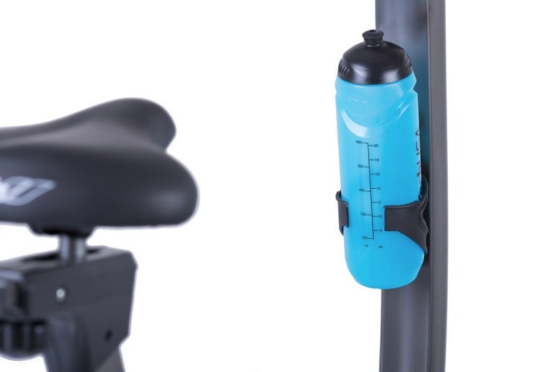 Součástí výbavy trenažéru jsou také transportní kolečka a vyrovnávače nerovnosti podlahy pro maximální stabilitu při šlapání a snadnou manipulaci v prostoru. Praktický držák na lahev je umístěn pod řídítky.