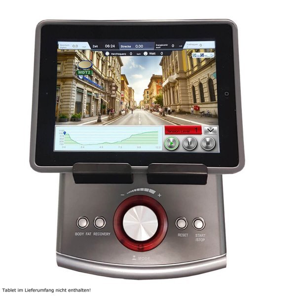Velkou předností tohoto modelu je systém Bluetooth a možnost připojení tréninkové aplikaci iConsole+ pro ještě větší zábavu a radost při tréninku. Aplikaci můžete připojit přes váš tablet nebo smartphone. Součástí displeje je integrovaný držák na tablet nebo smartphone a USB port pro nabíjení. Tablet není součástí dodávky.