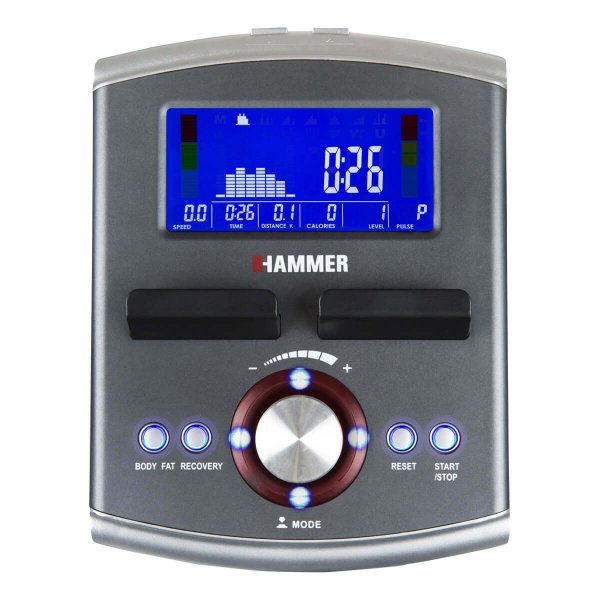 HAMMER Speed-Motion BT je špičkový stroj s masivní konstrukci. Trenažér vám umožňuje trénovat horní i dolní končetiny zároveň, aniž byste tím nijak nezatěžovali klouby a záda. Setrvačník v přední části stroje a jeho ergonomie budou vyhovovat jak menším, tak i větším postavám. Krok s délkou 43 cm a roztečí pedálů 14 cm nabízí přirozený pohyb.