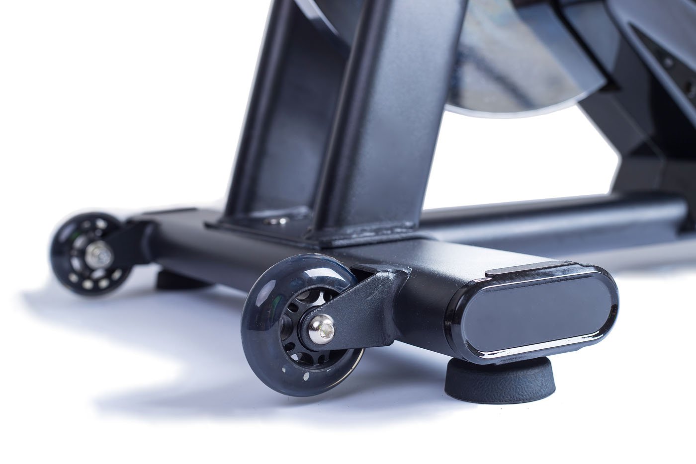 Trenažér nabízí transportní kolečka a vyrovnávače nerovností podlahy pro lepší manipulaci v prostoru a maximální stabilitu při tréninku. Vy tak můžete trénovat úplně bezpečně stabilně a naplno, a nemusíte se bát těžké manipulace se strojem ani nestabilní jízdy vsedě či vestoje!