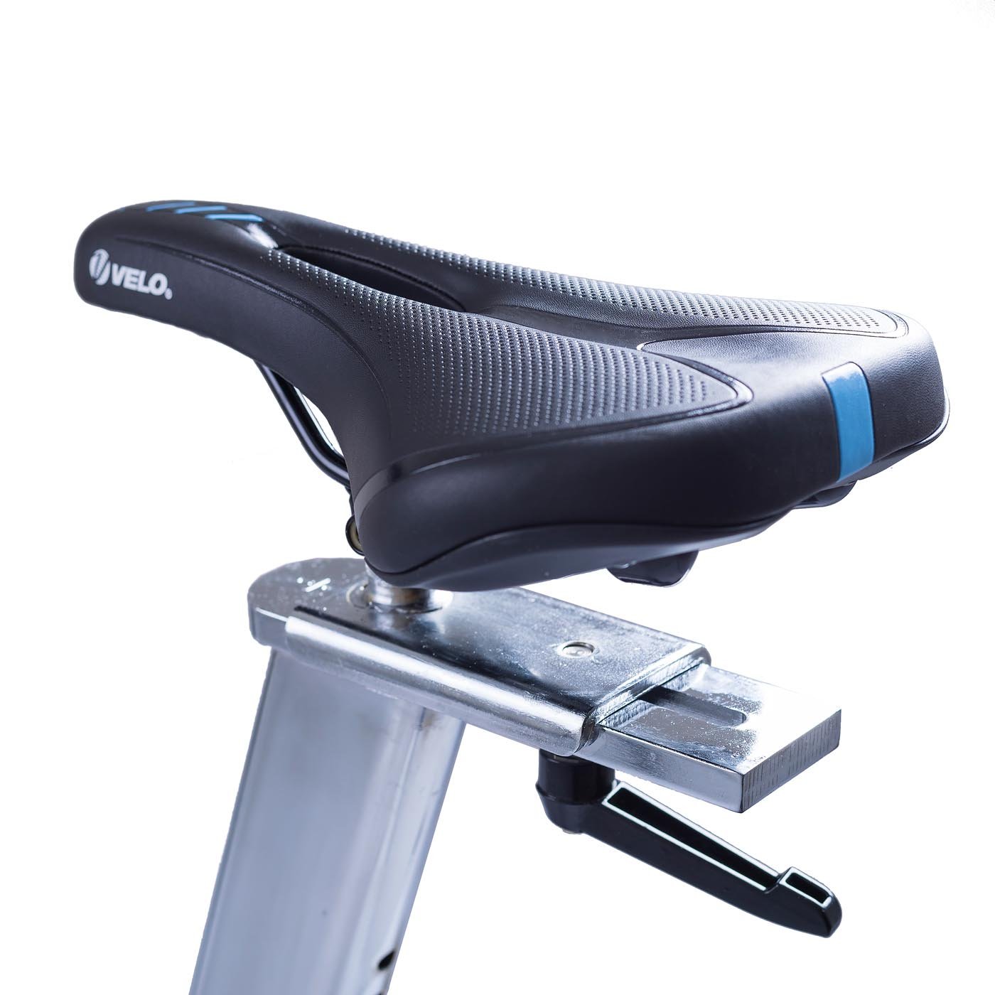 Součástí výbavy je i profesionální cyklistické sedlo značky VELO, které patří svým špičkovým zpracováním mezi ty nejlepší na trhu, při každém tréninku si tak budete připadat jako profesionál