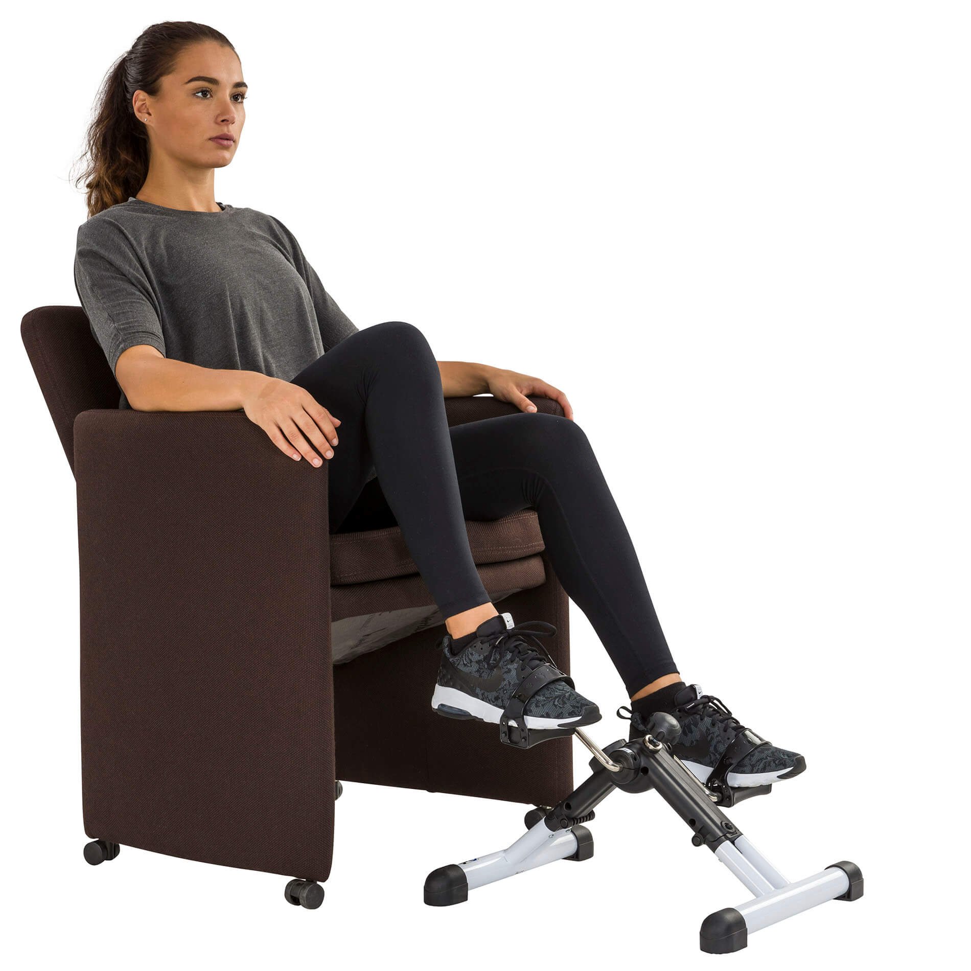 Tento malý trenažér bude ideální cvičební pomůckou pro lidi po operacích, kteří potřebuji rozhýbat končetiny a klouby jednoduchým pohybem, pro starší osoby, které můžou cvičit pouze v poloze sedu a pro každého, kdo chce jednoduše rehabilitovat. Procvičovat můžete nejen nohy, ale i ruce. Postačí trenažer postavit na stolek a místo nohou šlapat rukama. Odpor je zde zajištěn mechanickým přítlačným systémem, který lze regulovat otočným kolečkem. Robustní konstrukce z pevného kovu se da snadno složit a mini stroj je tak ještě menší a při úklidu nezabere prakticky žádné místo. Plastové pedály jsou vybavené fixačními řemínky (klipsnami) a bezpečně tak drží chodidlo na šlapačce.