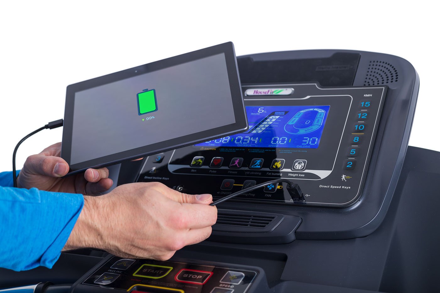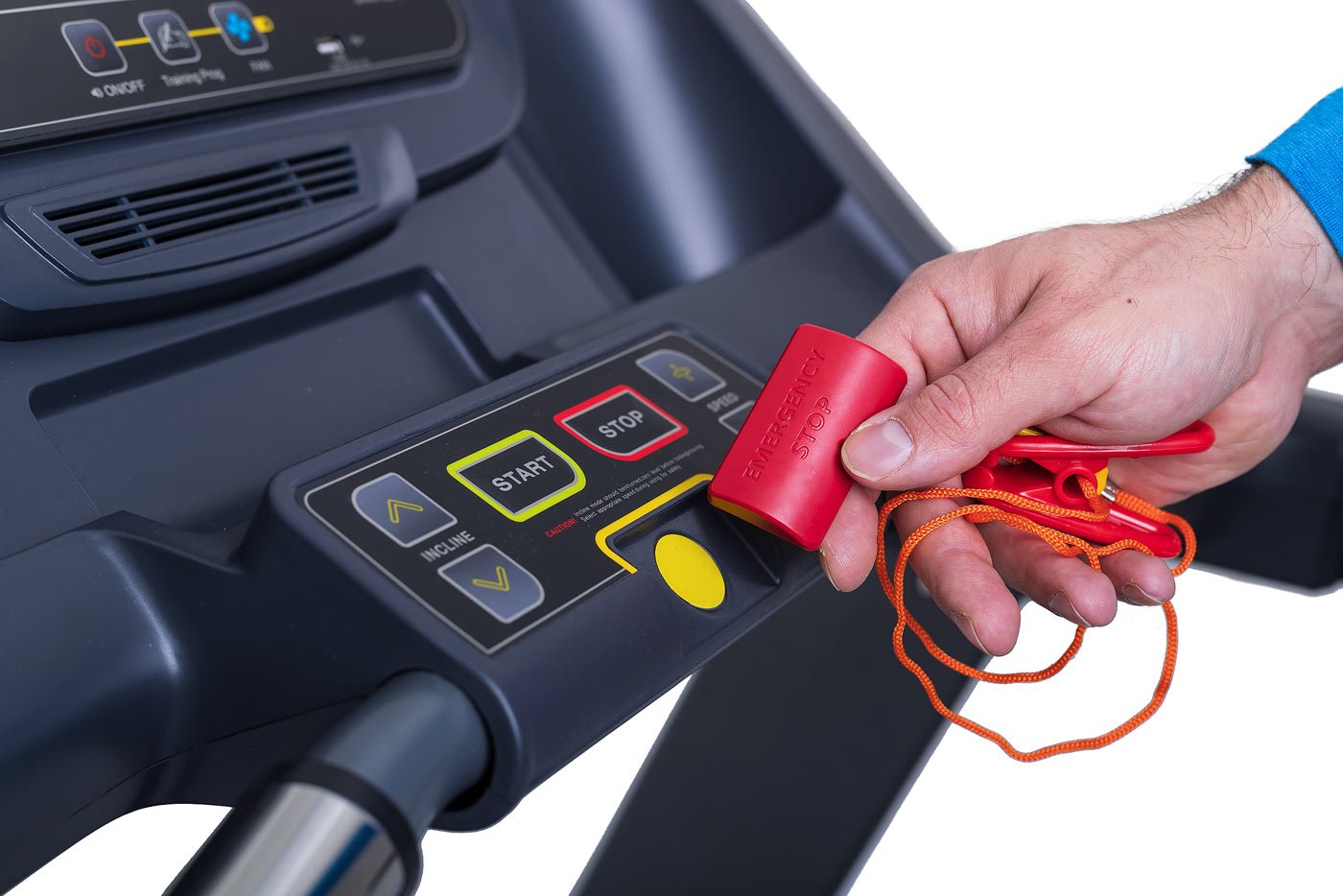 Součástí pásu je i bezpečnostní pojistka STOP, která v případě uklouznutí, či jiného klopýtnutí, pás okamžitě zastaví. Pomocí vstupu USB můžete dobíjet svůj smartphone či tablet.