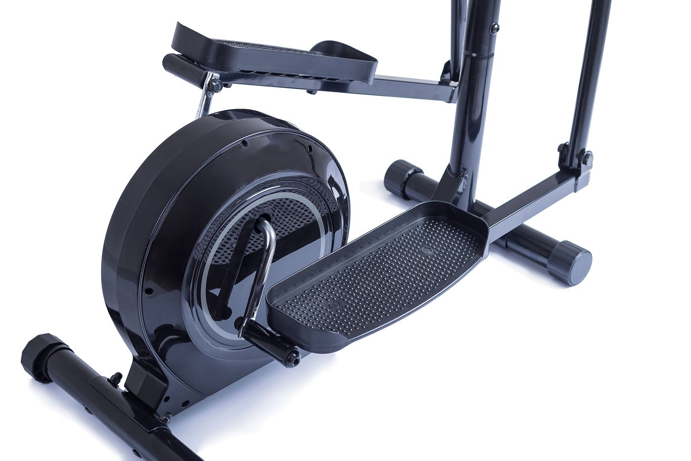 Eliptical je osazen nášlapy s protiskluzovým povrchem a zvýšenými okraji pro naprosto bezpečnou a stabilní polohu nohy na nášlapu. I při rychlejším tempu šlapání tedy nemusíte mít obavu o sklouznutí nohy.