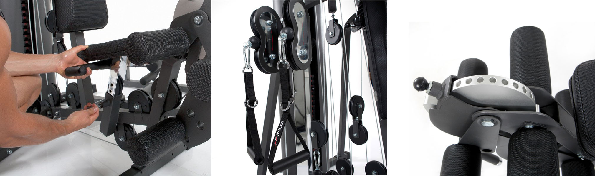 Model FINNLO Autark 2200 je rozšířen oproti modelu Autark 1500 o kladkový systém na boční straně posilovací věže. Díky tomuto důmyslnému kladovému systému se mnohonásobně zvýší variabilita vašich cviků při vašem tréninku. Můžete si samostatně nastavit každou kladku zvlášť dle vašich potřeb, ať už jde o přednožování, upažování, bicepsový zdvih atd.