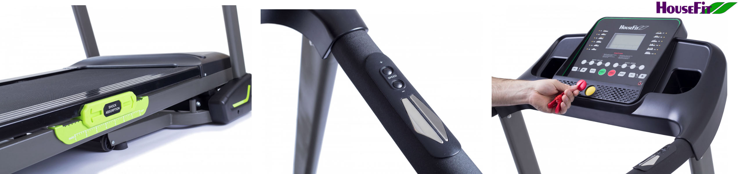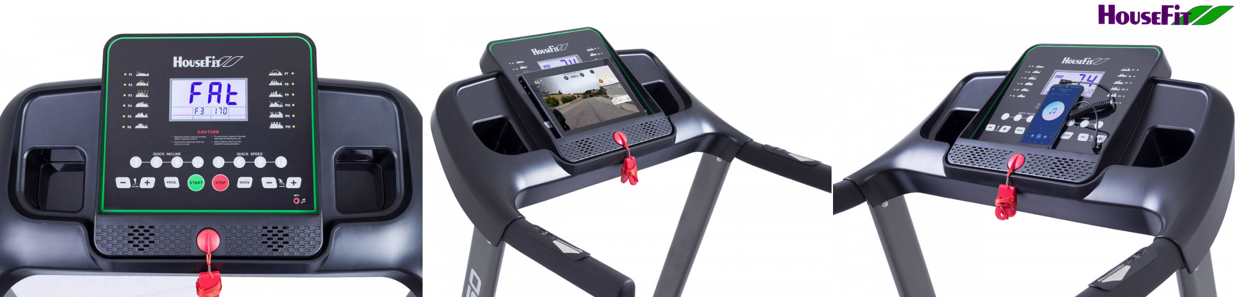Běžecký trenažér HOUSEFIT TEMPO 50 disponuje přehledným LCD displejem. Na displeji vidíme zobrazované hodnoty jako čas, vzdálenost, rychlost běhu, spotřeba kalorií a měření tepové frekvence. Kompletní nabídka programů obsahuje celkem 12 tréninkových programů a manuální režim. Na počítači trenažéru jsou integrované i tzv. horké klávesy pro nastavení okamžité rychlosti a sklonu.