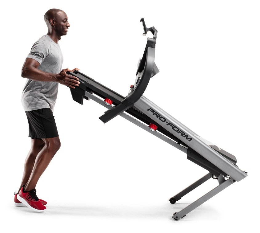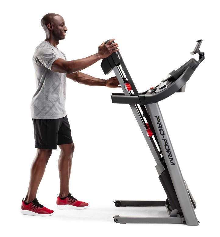 Model PROFORM Performance 400i nabízí samozřejmě možnost sklopení běžecké plochy do svislé polohy a to díky patentovanému systému skládání SpaceSaver® Design. Manipulace je velice snadná, zvládne ji bez problému každý a díky ní ušetříte polovinu prostoru, když zrovna neběháte. Spolu s transportními kolečky tak nebudete mít problém trenažér přemístit kamkoliv potřebujete.