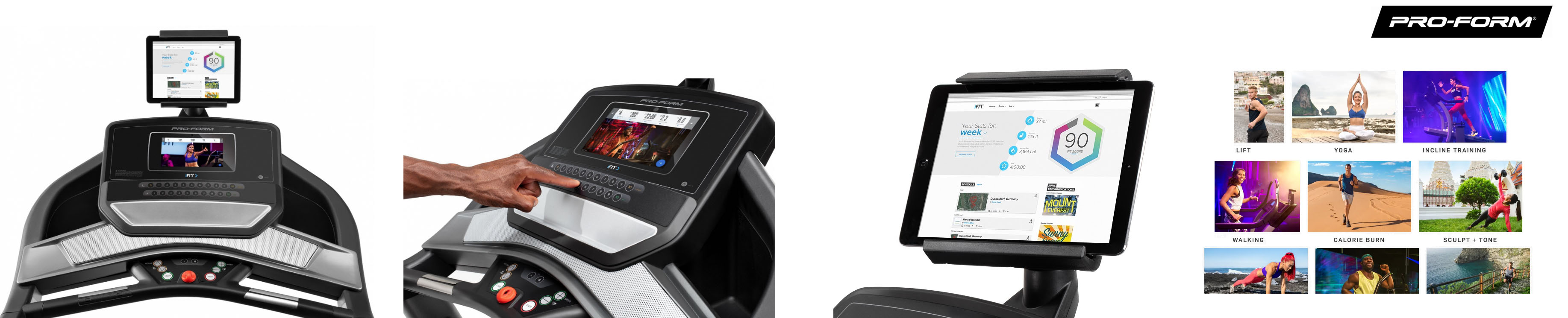 PROFORM Performance 400i nabízí přehledný 7” Smart HD Touchscreen" displej, který zobrazuje hodnoty jako například sklon, rychlost, spálené kalorie, tepová frekvence atd. Z programové nabídky nabízí řadu přednastavených programů pro spalování kalorií a budování fyzické kondice. Kromě toho máte u tohoto modelu možnost využívat tréninkovou aplikaci iFit na rok ZDARMA, která je zabudovaná přímo v počítači trenažéru.