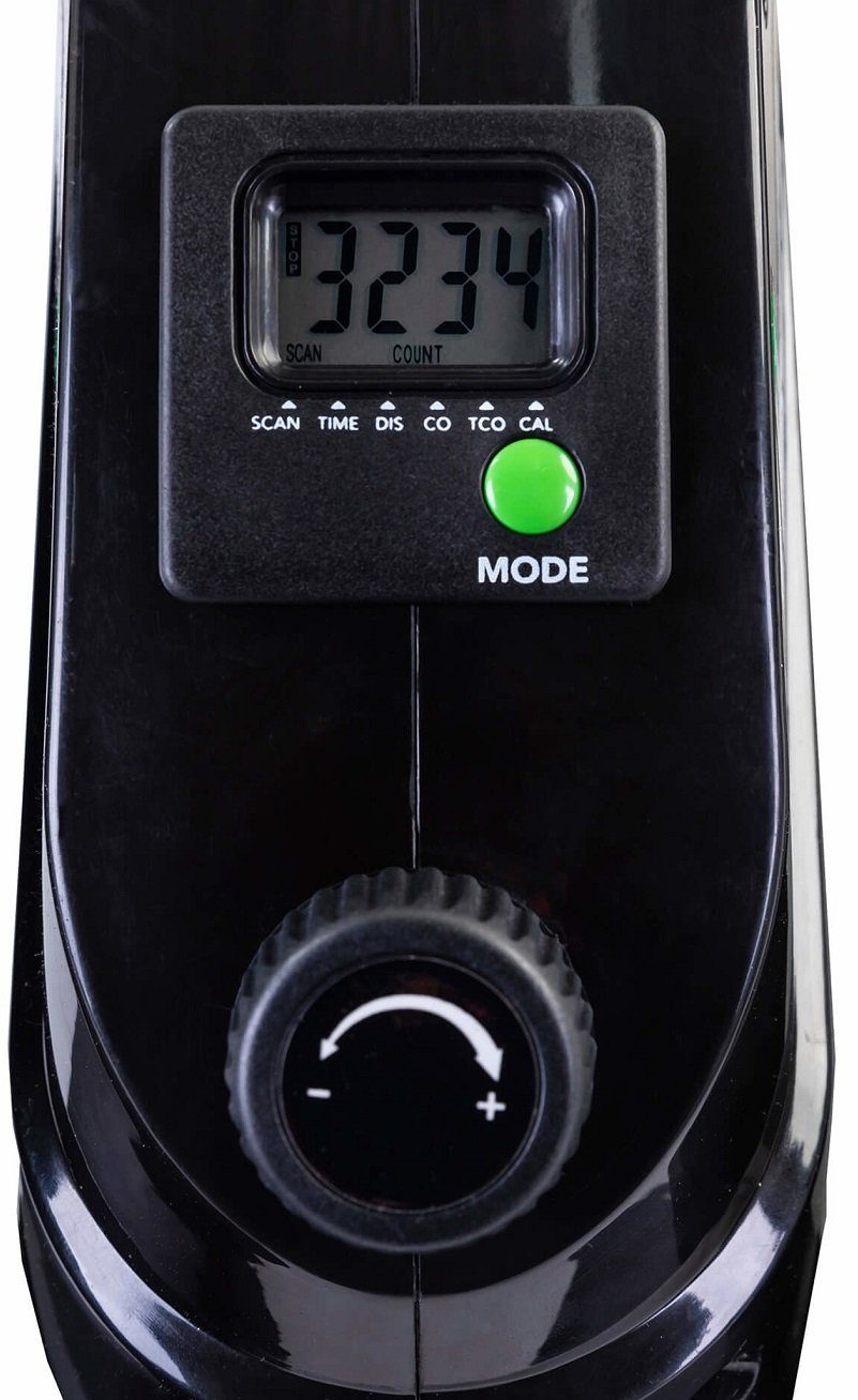 Tunturi Cardio Fit D10 Minieliptical disponuje LCD displejem, který zobrazuje hodnoty, jako je čas, vzdálenost a spálené kalorie.