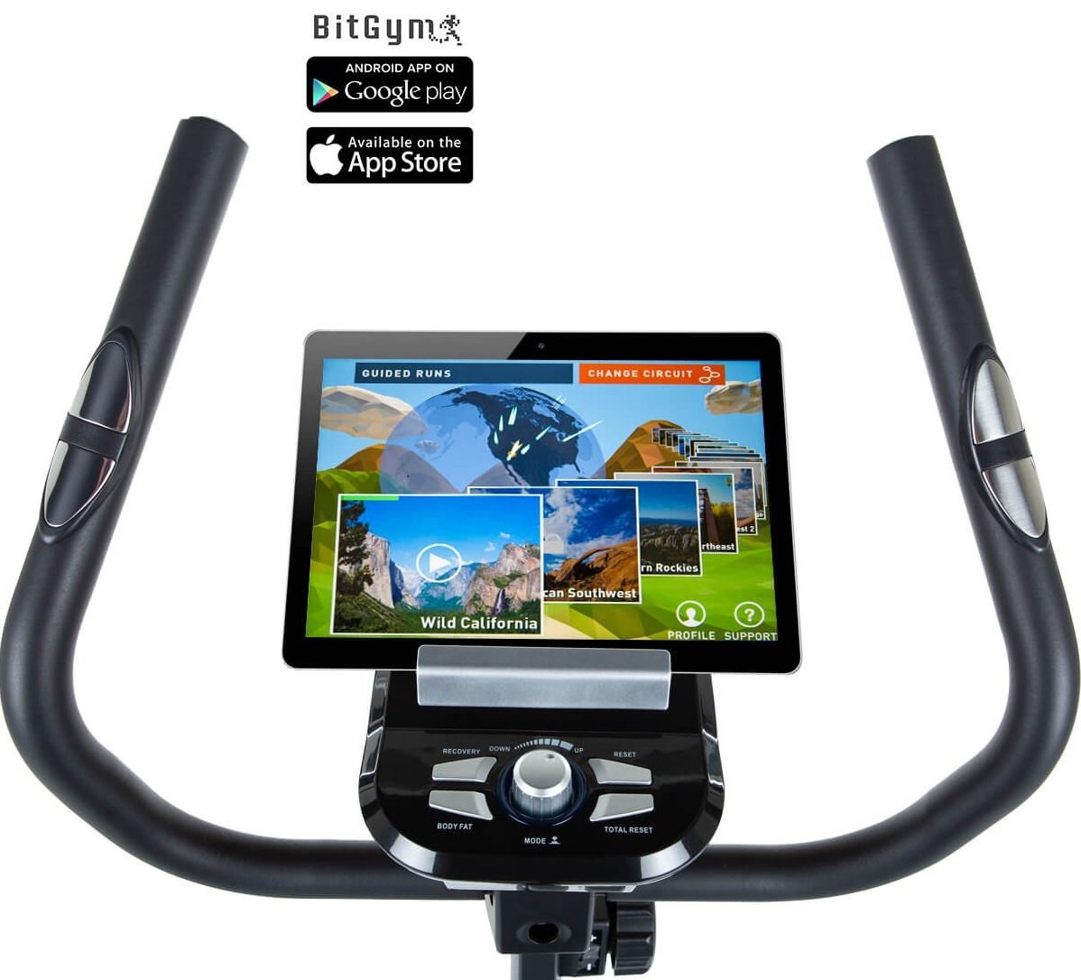 Monitor disponuje držákem tabletu a s jeho pomocí si můžete rozšířit tréninkové možnosti. Po instalaci fitness aplikaci BitGym nebo Kinomap můžete vytvářet svoje vlastní trasy po celém světě nebo využívat tréninková videa. Výsledky jednotlivých tréninku můžete ukládat a následně porovnávat. Tyto aplikace nejsou propojené s PC rotopedu nereguluji tak používaný odpor.
