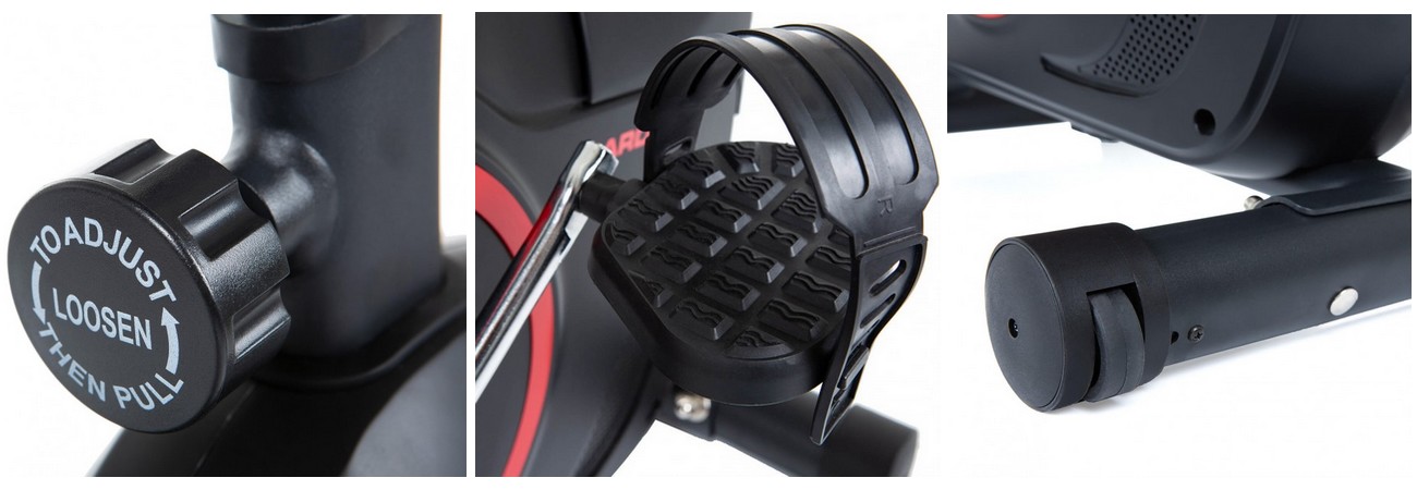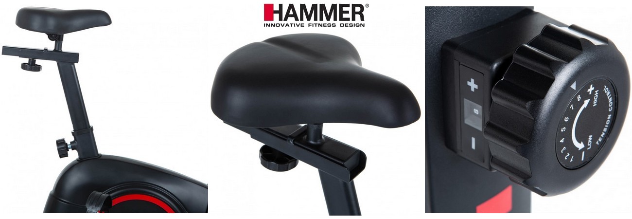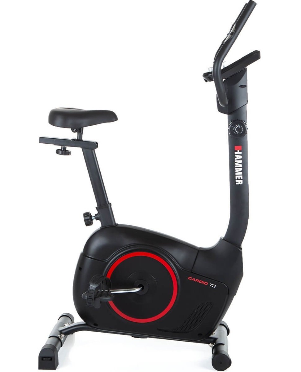Rámová konstrukce, výškově i horizontálně nastavitelné sedlo a naklápěcí řídítka zajistí pohodlné a správné posezení lidem s různou výškou. Spravně nastavěná vzdálenost a výška je velmi důležitá pro správný a komfortní trénink. Sedlo stroje si snadno a rychle nastavíte do ideální polohy jak v horizontálním, tak i vertikálním směru, včetně jeho sklonu. Nastavitelný je i sklon řídítek. Vyvážený setrvačník o hmotnosti 6 kg a elektromagnetický brzdný systém zaručuje komfortní, plynulý a tichý chod i při velkých zátěžích. Maximálně však do hmotnosti 110 kg. HAMMER Cardio T3 má mískový šlapací střed a disponuje volnoběhem.