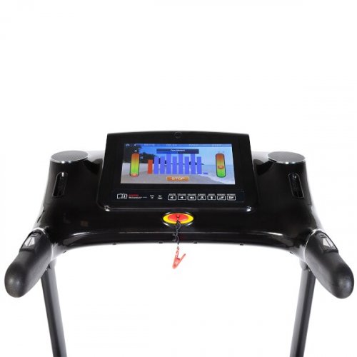 Počítač je vybaven barevným LCD displejem o velikosti 15,6", který zobrazuje všechny tréninkové hodnoty jako je čas tréninku, momentální rychlost, sklon desky, uběhnutá vzdálenost, spálené kalorie, tepová frekvence, apod. K dispozici máte 25 přednastavených tréninkových plánů a 7 uživatelsky nastavitelných programů dle vašeho přání. Klávesnice panelu je vybavená všemi potřebnými tlačítky jako Start nebo Stop, hlasitost reproduktorů, najdete zde i tlačítka pro plynulou změnu jak rychlosti, tak i sklonu pásu a tlačítka s předdefinovanými rychlostmi i sklonem. USB port pro nabíjení a 3,5 mm konektor pro poslech hudby.