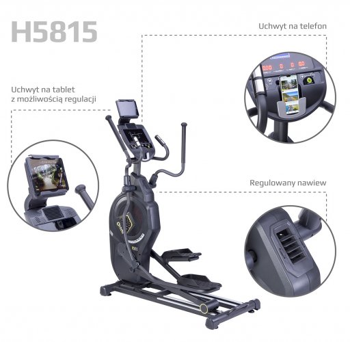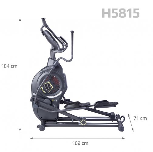 Eliptický trenažér HMS Premium H5815 spadá do kategorie Semi Commercial a může být tedy použit jak v domácí tělocvičně, tak v soukromých klubech a hotelových posilovnách. Největší výhodou modelu je systém zátěže, který kombinuje klasickou magnetickou brzdu s větrným odporem známým z Air Biků. Kombinace magnetické a lineární zátěže spolu s 8 kilogramovým zátěžovým kolem zajišťují plynulý pohyb, který u běžného trenažéru není možný.