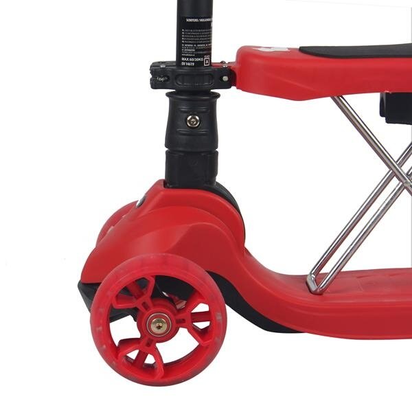 Všechny kolečka v sobě mají ukryty LED diody, které se při pohybu rozsvítí, široké zadní kolečko zvyšuje stabilitu koloběžky. Řídítka je možné výškově nastavit v rozmezí 63 - 80 centimetrů.