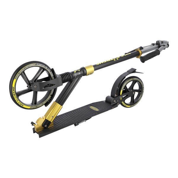 Systém odpružení obou kol zvyšuje jízdní komfort. Tlumiče pohlcují nárazy a jízda po nerovném asfaltu, nebo dlažebních kostkách je příjemnější a tišší. Robustní zadní blatník slouží jako nožní, přítlačná brzda. Široká řídítka jsou opatřena gumovými rukojeťmi, které zajišťují pevný a pohodlný úchop. 250 a 200 milimetrů velká kola jsou osazena ložisky ABEC 9. Tato kombinace zajišťuje rychlou, plynulou a bezpečnou jízdu.