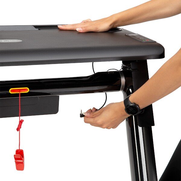 Elektrický trenažér LOOP12 je moderní běhací pás pro domácí použití, který se od klasických běžeckých strojů liší možností nasazení pracovního pultu, který poslouží jako odkládací plocha pro notebook nebo knížku. S nasazeným pultíkem se rychlost stroje omezí na max 6 km/hod. Pult lze propojit s konzolí a ovládat tak rychlost přímo z něj. Běžecký pás není vhodný pro komerční účely.