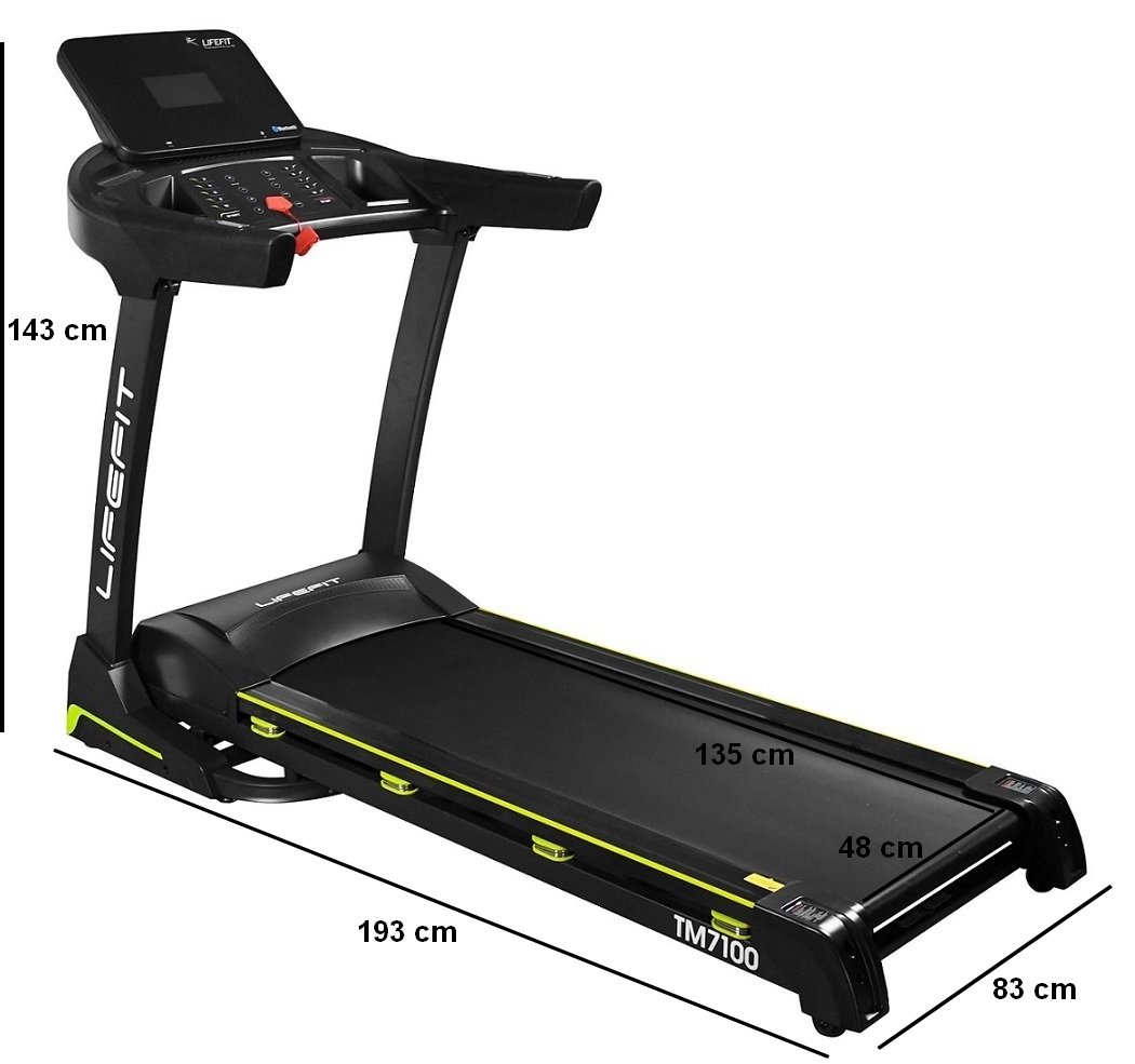 LIFEFIT TM7100 je kvalitní běžecký pás pro domácí použití, který vám pomůže zlepšít vaši fyzickou kondici. Pás je osazen kvalitním a tichým motorem s trvalým výkonem 2,2 kW (3 HP). Motor je opatřen velkým krytem s izolací pro snížení vibrací při běhu. Elektronicky nastavitelná rychlost v rozsahu 1 - 20 km/h a utomatické nastavení sklonu ve rozmezí 0 - 20 %. Běžecký trenažer bude dokonalým strojem pro rekreační běhání v domácí tělocvičně nebo pro běžce začátečníky.