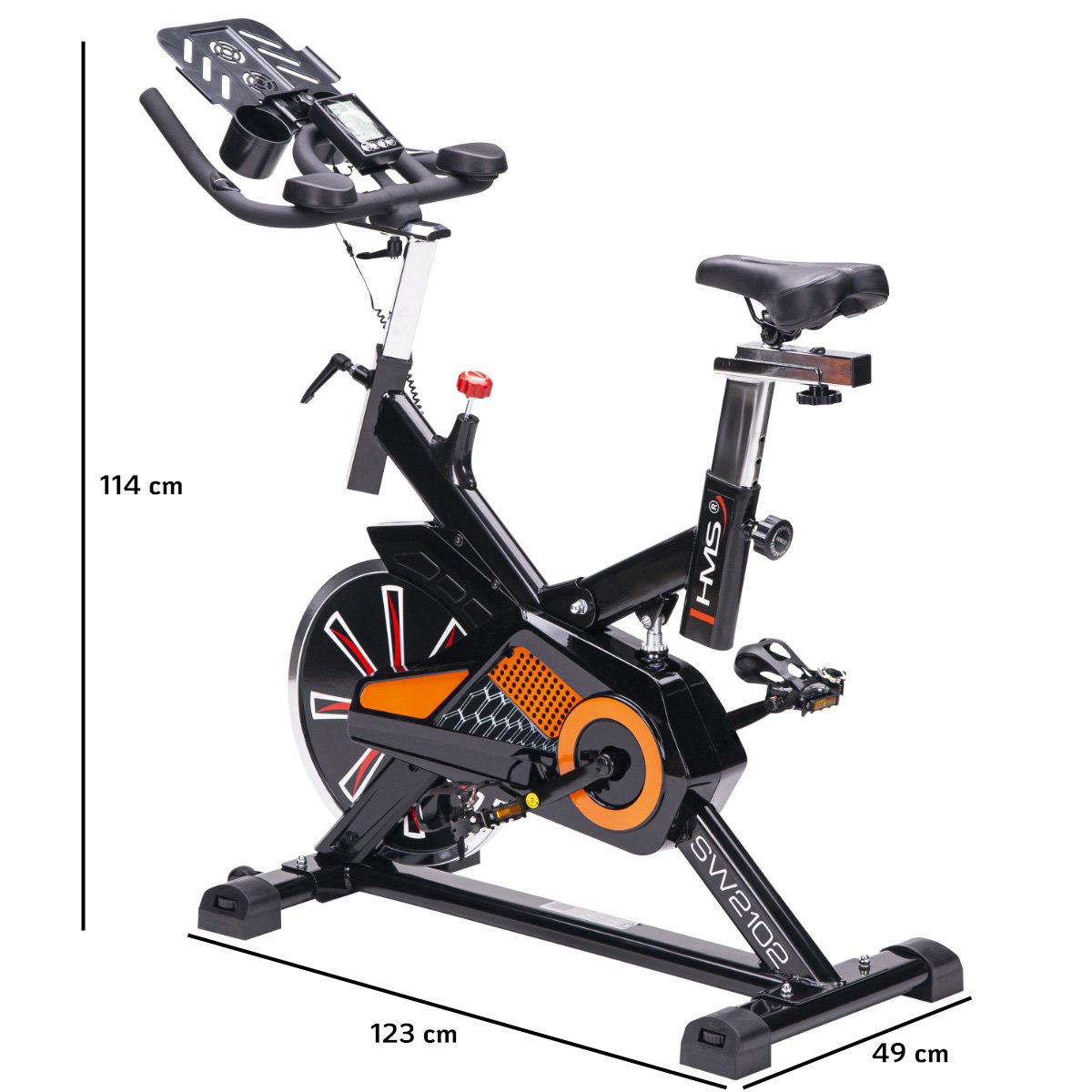Cyklotrenažér HMS Premium SW2102 s oranžovými prvky je moderní trenažér navržený speciálně pro indoor cycling, domácí reálný zážitek z jízdy na kole. Cyklotrenažér svou konstrukcí dokonale simuluje klasické silniční kolo, široký rozsah individuálního nastavení sedla i řídítek zaručuje komfort i dokonalou pohybovou ergonomii drobným i vyšším postavám. Pravidelný trénink na cyklobiku vám zajisti potřebnou kondici bez zatěžování kloubů. Nezáleží tak ani na věku ani momentálních fyzických schopnostech. Trénujte za každého počasí a zlepšujte své zdraví, posilujte dolní končetiny, břicho a hýždě.