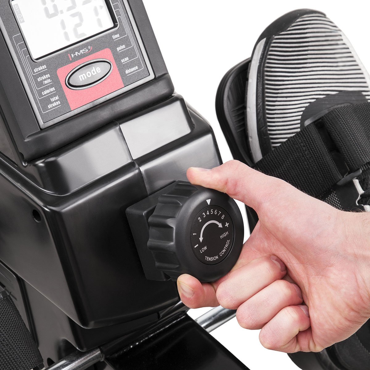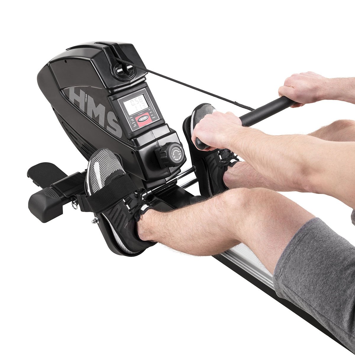 Veslovací trenažér HMS ZM1901 se vyznačuje tichým chodem, snadnou obsluhou a možností sklopení kolejnice.