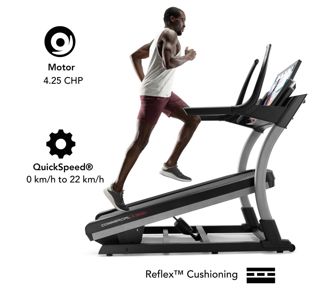 NORDICTRACK Incline Trainer X32i 2021 je běžecký trenažér nejen pro domácí fitness, ale i pro lehce komerční provozy. Bude vhodný pro pravidelný trénink začínajících sportovců, pokročilejších běžců, ale i pro vášnivé sportovce. Stroj poskytuje kombinaci kvalitní mechaniky a masivního rámu s nosností až do 136 kg váhy cvičence. Motor s trvalým výkonem 4,25 HP (3,17 kW), běžecká plocha o velikosti 55 x 165 cm, elektronicky nastavitelná rychlost do max 22 km/h stejně jako elektornicky regulovaný sklon v rozmezí od -6 % + 40 %, nabídne každému maximální komfort při běhání. Rychlost i sklon plochy můžete nastavit krokově nebo už přednastavenými tlačítky na panelu PC. Využijte dnešní mimořádnou slevu 1500 Kč s kódem nordictrack.