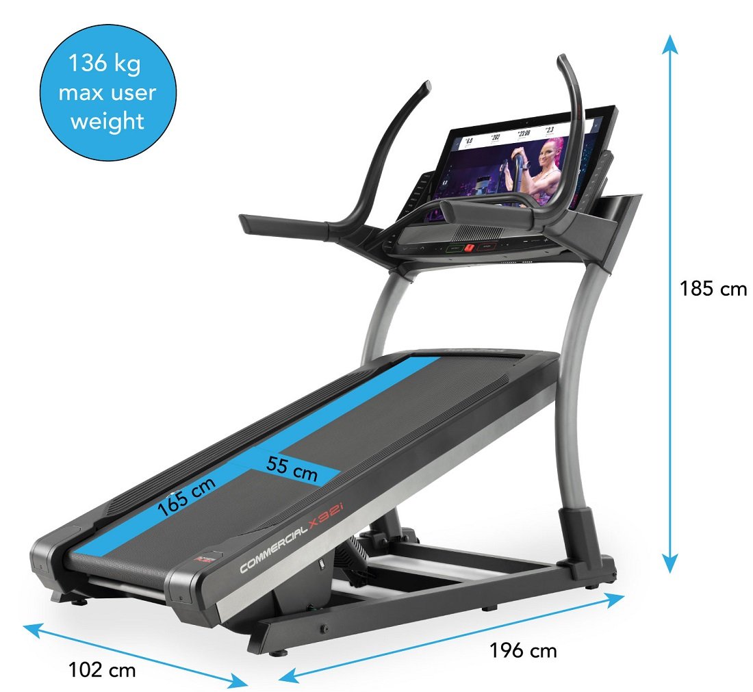 ID: NTL39221-INTBěžecký pás do domácího a lehce komerčního provozu. Aplikace iFIT, 31,5" displej, ventilátor, reproduktory, motor 4,25 HP, max rychlost 22 km/hod, sklon -6 % + 40 %, běžecká plocha 55 x 165 cm, transportní kolečka. Nosnost 136 kg, hmotnost 170 kg.