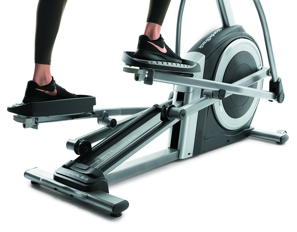 Trenažér je vhodný jak pro drobnější tak vyšší postavy, a to díky přirozené ergonomii pohybu. Délka kroku je nastavitelná v rozmezí 45 - 48 cm a elektronicky nastavitelný sklon je až do 20°. Nejmenší sklon zajistí nejméně náročný pohyb, a naopak při nejvyšším sklonu zabírají stehna a hýždě. Trénink na tomto stroji si tak můžete přizpůsobit vašim možnostem a aktuální kondici. Navíc model NordicTrack Commercial C9.9 umožňuje i nastavení úhlu chodidla a další tréninkové možnosti. Masivní rámová konstrukce, průmyslová ložiska ve všech pohyblivých částech stroje, včetně kvalitních komponentů, prodlužuje životnost stroje i při pravidelném tréninku. Šlapání na crossovém trenažéru je příjemné a velice šetrné k vašim kloubům.