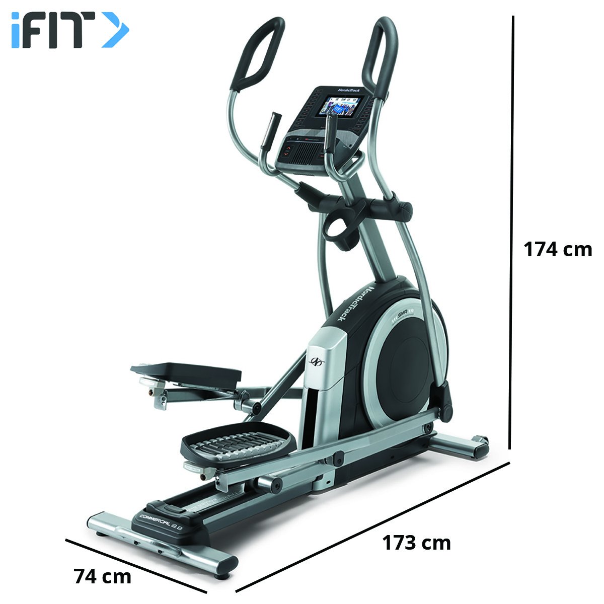ID: NTEL79820-INTCrossový trenažér do domácího prostředí. Aplikace iFIT (připojení přes Bluetooth), MP3 připojení, zabudované reproduktory a ventilátor, 7" grafický dotykový displej, 11kg setrvačník. Držák na lahev + držák na tablet, transportní kolečka, vyrovnávače nerovností. Nosnost 159kg, hmotnost 110kg