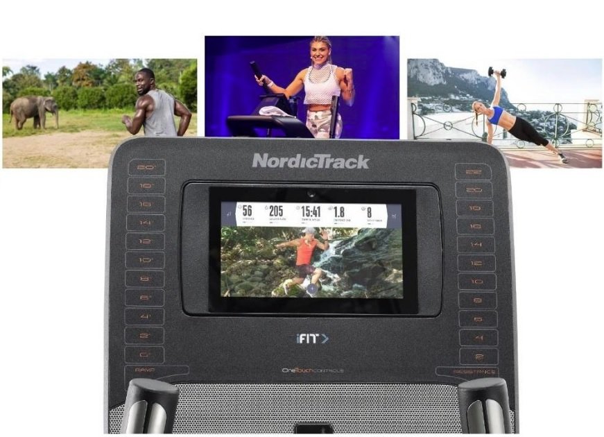 Model NordicTrack Commercial C9.9 má tréninkovou aplikaci iFIT přímo zabudovanou v trenažéru. K trenažéru nelze připojit tablet či telefon.