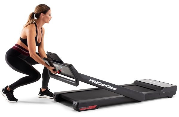 Model běžeckého pásu PRO-FORM City L6 poskytuje sklopení konzole do horizontální polohy na běžeckou plochu a nabízí tak velkou úsporu místa. Rozměr po sklopení: 187 x 63 x 32 cm. Složení i manipulace jsou velmi snadné, a pokud zrovna neběháte můžete stroj snadno uložit třeba i pod postel. Ke snadnému přemísťování pomůžou transportní kolečka, která jsou součástí stroje.