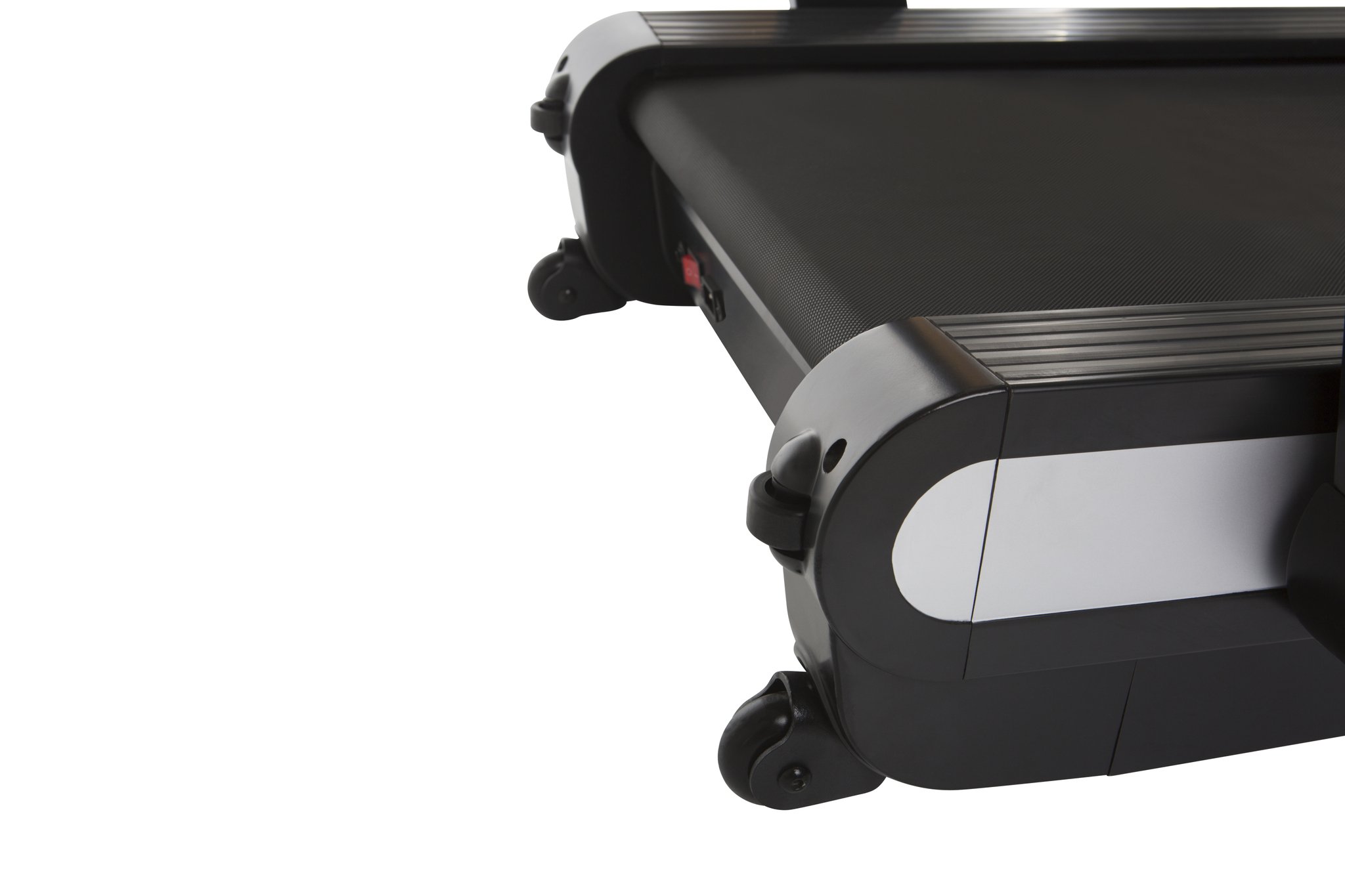 Skládání a rozkládání je velmi snadné díky červenému nožnímu pedálu. Pro složení běžeckého pásu je nutné nastavit maximální úhel sklonu (12 %). Stisknutím tlačítka FOLD na konzole nastavíte polohu skládání. Stačí sešlápnout červený nožní pedál a běžecký pás se složí, aniž byste se museli zdržovat šroubováním. Poté můžete použít rukojeť na zadním konci běžeckého pásu a transportní kolečka k přesunu Q. VADIS 3.0 po místnosti velmi snadno. Perfektní úspora místa! Ve složeném stavu se běžecký pás dokonale vejde pod pohovku nebo ve vzpřímené poloze vedle skříně.