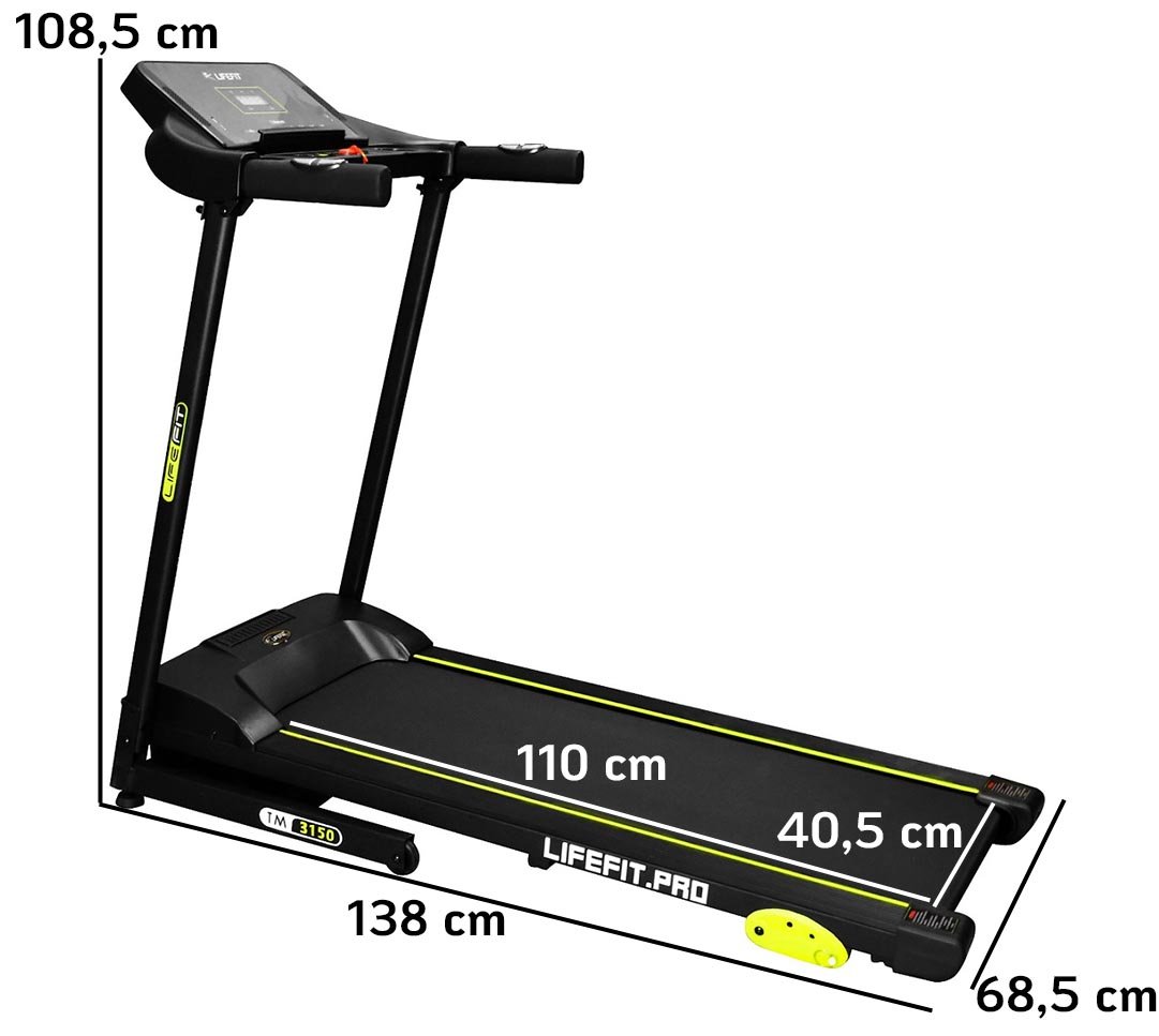 LIFEFIT TM3150 je kvalitní běžecký pás pro domácí použití, který vám pomůže zlepšit vaši fyzickou kondici. Pás je osazen kvalitním a tichým motorem s trvalým výkonem 0,93 kW (1,25 HP). Motor je opatřen velkým krytem s izolací pro snížení vibrací při běhu. Elektronicky nastavitelná rychlost v rozsahu 1 - 12 km/h a manuální nastavení sklonu do 3 pozic. Běžecký trenažer bude dokonalým strojem pro rekreační běhání v domácí tělocvičně nebo pro běžce začátečníky.