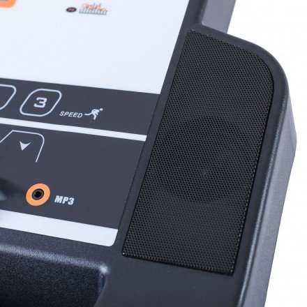 Trenažér má vestavěné reproduktory pro připojení MP3, smartphonu nebo iPodu. Pro připojení vašeho telefonu k MP3 je součástí balení kabel (3,5 jack). Držák na tablet vám umožní sledování oblibeného filmu po dobu tréninku. Tablet není součásti dodávky. Součástí pásu jsou také 2 držáky na lahev s vodou. Pod displejem se nachází bezpečnostní pojistka STOP, která v případě uklouznutí, či jiného klopýtnutí, pás okamžitě zastaví.