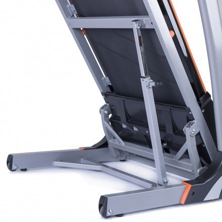 Běžecký pás je vybaven stabilními madly s integrovanými dotykovými měřiči tepové frekvence (tzv. hand pulsy). Pro snadné uskladnění lze stroj složit do vertikální polohy a pro jednoduché přemisťování je vybaven transportními kolečky. Po složení běžecké plochy do vertikální polohy má stroj úsporné rozměry 90 x 69 x 138 cm (délka x šířka x výška). Sklopení stroje jde lehce, zvládnou ho bez problémů i ženy.