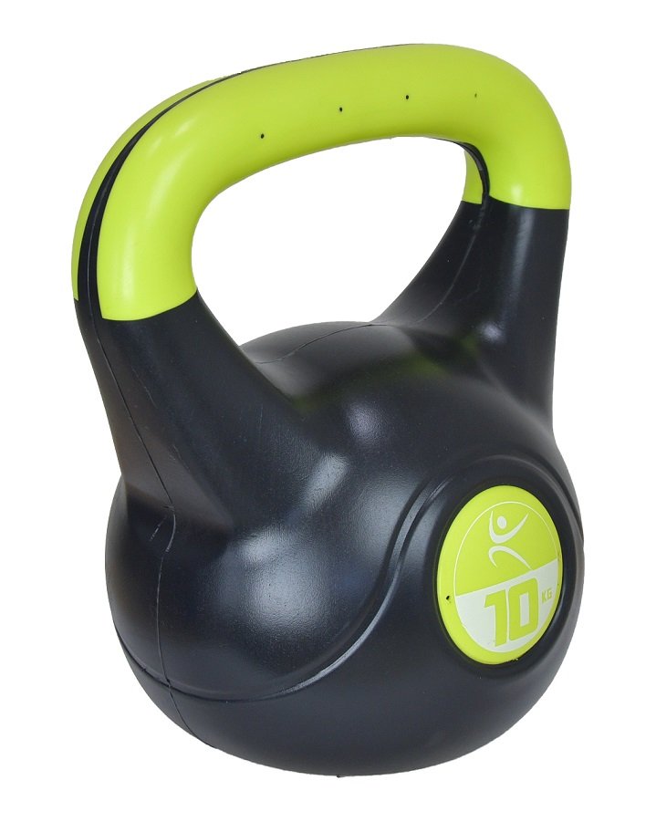ID: RL-F-VIN-KETT10Jednoruční činka z vinylu tzv. kettlebell o hmotnosti 10 kg. Cviky s kettlebellem: TGU (turecký vztyk), švih (swing), mrtvý tah, shyb, nadhoz, tlak, trh.