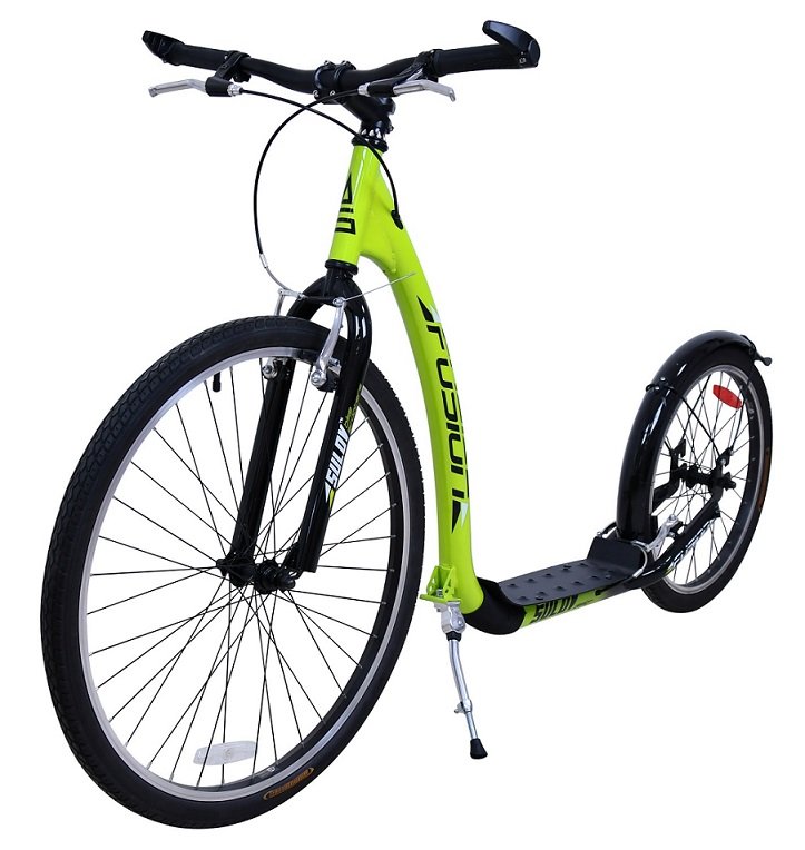 Sportovní koloběžka FUSHION je díky velkým nafukovacím kolům 26"/20" ideální pro jízdu ve městě i na zpevněných cyklostezkách.