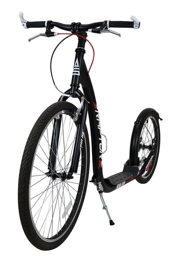 Sportovní koloběžka RAPTOR je díky velkým nafukovacím kolům 26"/20" ideální pro jízdu ve městě i na zpevněných cyklostezkách.