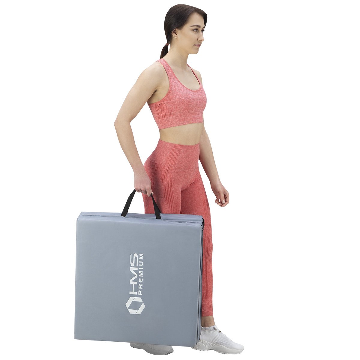 HMS Premium MGS02 je skládací žíněnka vyrobená ze tří bloků pěnového polyetylenu, které jsou vloženy do nylonového obalu. Díky tomuto řešení je možné podložku snadno složit a přenést.