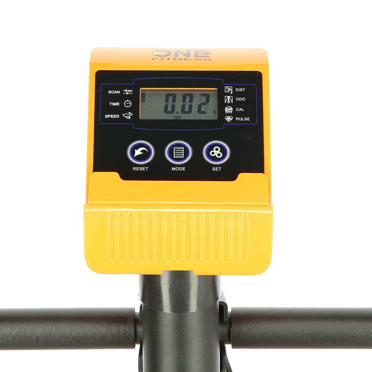 Počítač je vybaven displejem, který zobrazuje všechny potřebné údaje - čas tréninku, rychlost, vzdálenost, spálené kalorie, celková vzdálenost a tepová frekvence. Pod displejem nalezneme tlačítka RESET, MODE a SET. Pod tlačítky se nachází stojánek pro mobilní zařízení, na kterém můžete sledovat například oblíbený seriál. Tepová frekvence je měřena pomocí elektrod umístěných v madlech. Sedlo je výškově nastavitelné a jeho vzdálenost od pedálu se pohybuje v rozmezí od 50 do 70 centimetrů. Řídítka mají nastavitelný úhel. Pro maximální stabilitu je zadní "noha" trenažéru osazena otočnými patkami pro vyrovnání stroje do roviny. Nízká hmotnost trenažéru usnadňuje jeho přenášení.