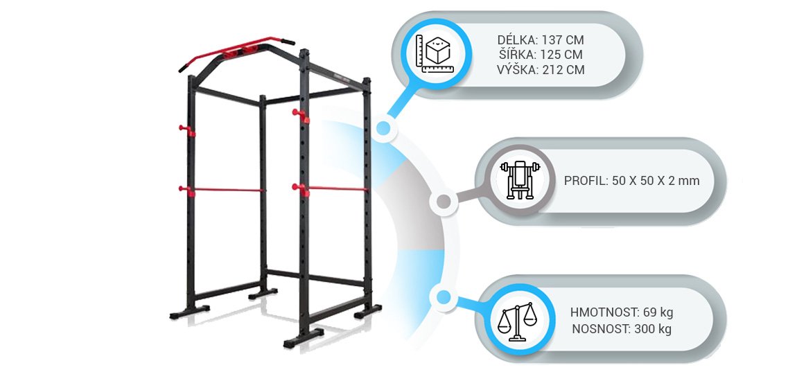 ID: AB-17-3-128Max. zatížení klece je 300 kg. 13 výškových pozic, váha klece 69 kg, možnost ukotvení k podlaze.