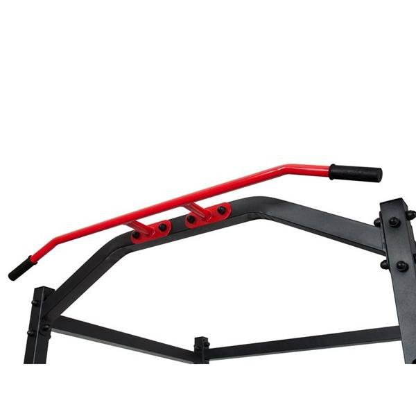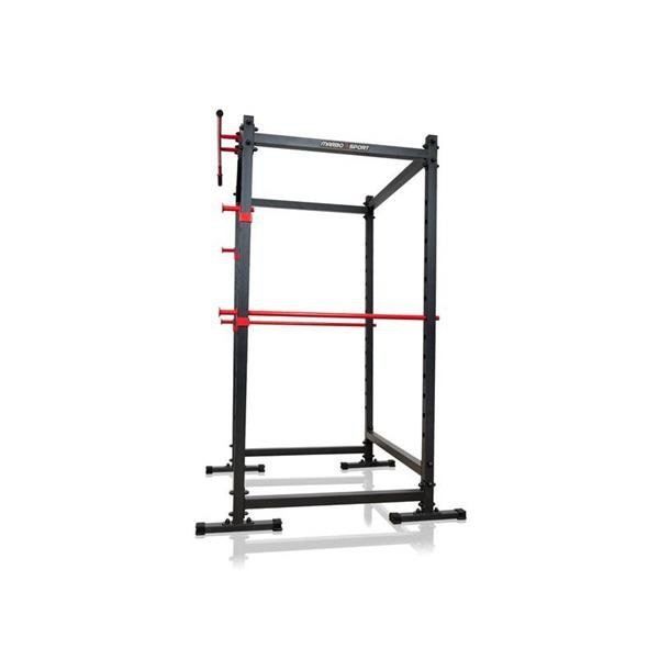Posilovací klec MARBO MS-U112. Produkt ze série SEMI-PRO určený pouze pro rekreační využití, avšak toto označení nijak neznevažuje toto robustní zařízení s profilem 50x50mm. Posilovací klec nabízí nepostradatelný základ pro cvičení se závažím a vlastní váhou. Zařízení nabízí možnost procvičení rozdílných skupin svalstva, především cviky s tyčemi se závažím a zdvihy vlastní váhy. Na cvičení se závažím jsou k dispozici 2 jističe, jejichž výše se dá individuálně nastavit. Maximální zatížení klece je 300 kg a má 13 výškových pozic. Serie SEMI-PRO obdržela Top Security Certificate - udělován za bezpečnost a dodržování platných norem ze strany Evropské kvality.