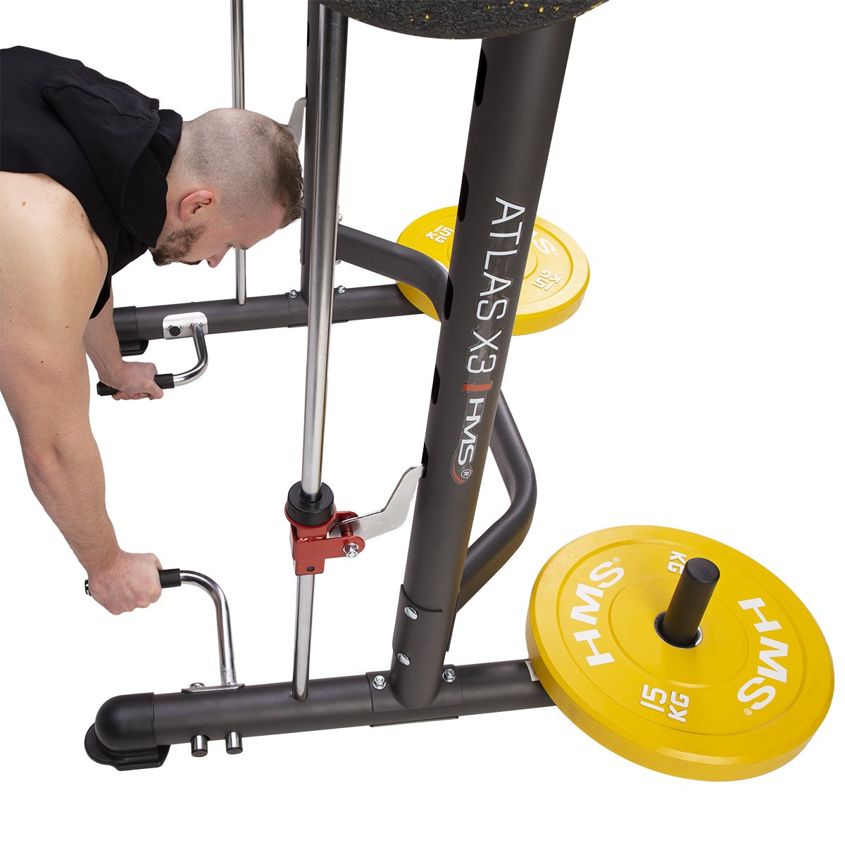 Multipress HMS ATLAS X3 je ideálním nástrojem pro všechny, kdo chtějí začít, nebo již mají zkušenosti se silovým tréninkem. Hlavní charakteristikou každého multipressu jsou kolejnice, po kterých se pohybuje vzpěračská osa s háky. Tyto háky zapadají to otvorů v konstrukci a tento systém má hned dvě funkce: