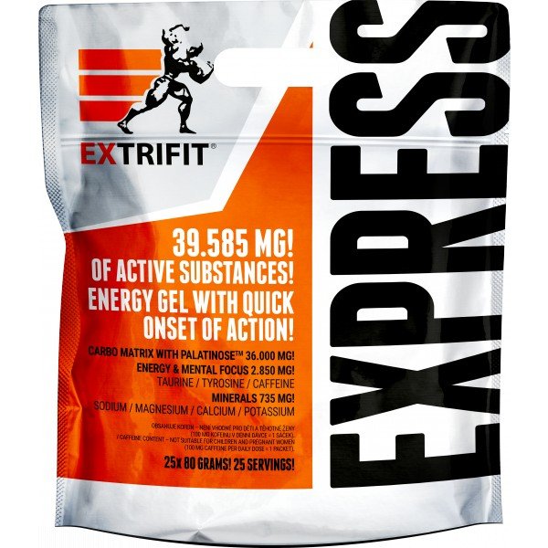 Express Energy Gel je unikátní energetizující produkt od Extrifitu, který sportovci používají k okamžitému dodání energie před tréninkem a při tréninku. Jdete na trénink unavení po dlouhém dni v práci? Chybí Vám energie v průběhu delší fyzické aktivity? Express Energy Gel Vám okamžitě vrátí energii do sportovního i mentálního výkonu díky vyváženému poměru tří druhů sacharidů, obsahu energizérů, stimulantů a vyváženému komplexu minerálních látek. A to vše v kompaktním balení hotového gelu, který je připravený k okamžité konzumaci.