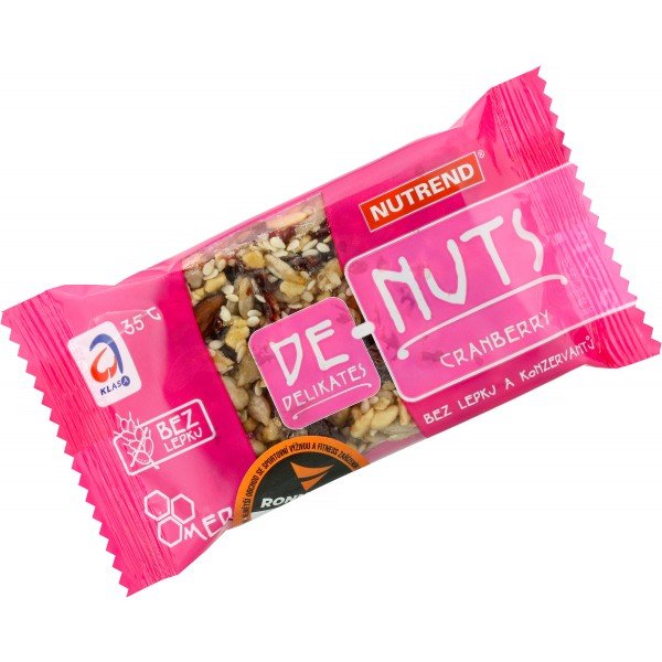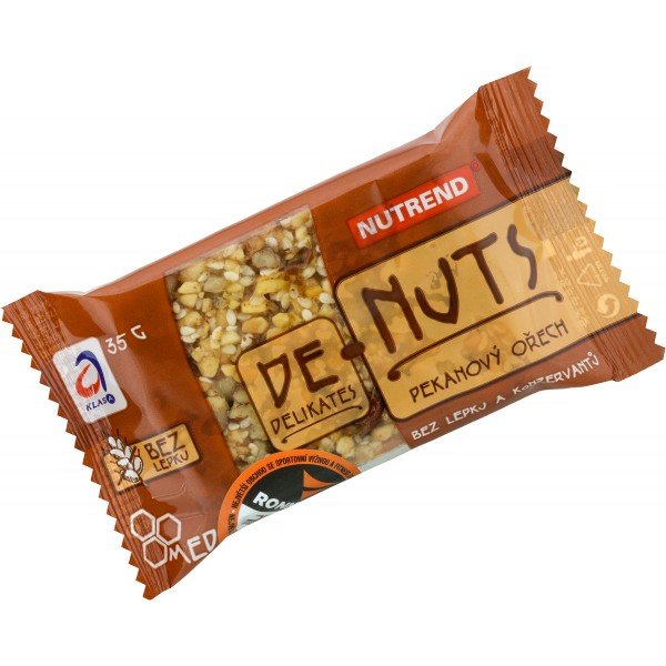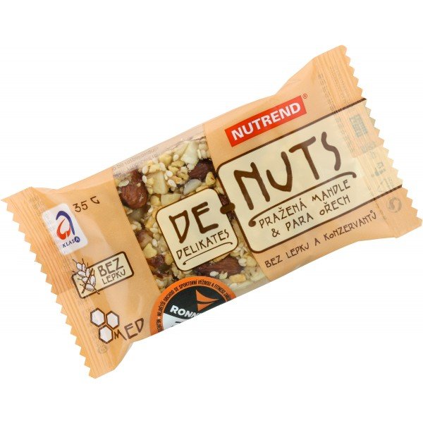 Delikátní tyčinka plná zdraví prospěšných ořechů a medu. DeNuts je bez konzervantů a bez trans-nenasycených mastných kyselin. Zdravé medové mlsání dodá kvalitní energii a nezbytné vitamíny. Některé příchutě jsou také v čokoládě - skvělá chuť křupavých oříšků, semínek a medu je tak doplněna o vynikající hořkou čokoládu.