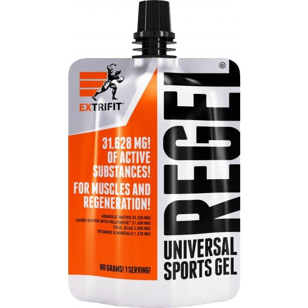 Lámali jste si někdy hlavu nad tím, jaké všechny látky a v jakém množství máte dávkovat pro urychlení regenerace po tréninku? Jaké přijímat sacharidy, jak dávkovat aminokyseliny nebo kolik užívat glutaminu a kreatinu pro odvrácení katabolismu po tréninku? Firma Extrifit vyslyšela tyto Vaše časté dotazy! Regel je dokonale sestaveným komplexem všech látek, které sportovec nutně potřebuje doplnit v průběhu a po skončení tréninku! Regel obsahuje pečlivě vyvážený poměr tří druhů sacharidů a volných aminokyselin, anabolizéry, dvě formy kreatinu a komplex vitamínů a minerálních látek. A to vše ve formě hotového gelu připraveného k okamžité konzumaci.