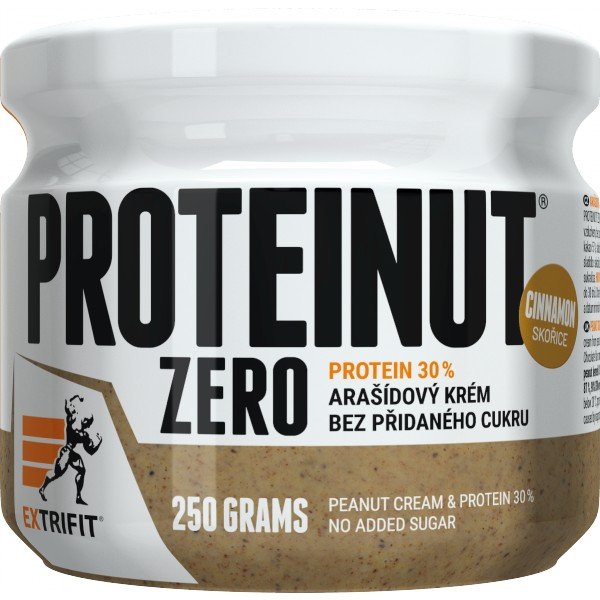 Proteinut Zero je krém z arašídů a 90% syrovátkového proteinového izolátu CFM. Superpotravina od společnosti Extrifit. Produkt obsahuje 30 % bílkovin ve třech delikátních příchutích – čokoláda, slaný karamel a skořice. Tento produkt je vyroben přímo ve výrobních halách společnosti Extrifit v České republice, a to od A až po Z. Jádra arašídů jsou pražená suchým vzduchem, bez použití oleje, je zcela bez přidaného cukru a má opravdu delikátní chuť![zbozi:7926,7925,6447]