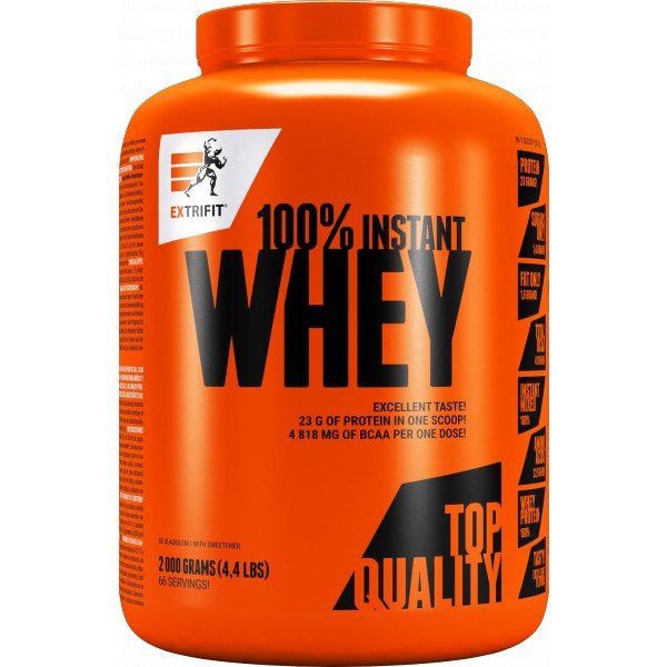 100 % Whey Protein je plně instantní, skvěle se rozpouští a jeho příprava je tedy velmi snadná. Hotový nápoj má velmi příjemnou konzistenci. Příjem tohoto vysoce kvalitního zdroje bílkovin přispívá k růstu svalové hmoty a k jejímu udržení v situacích, kdy je ohrožena katabolizací. 100 % Whey Protein od Extrifitu je výborně stravitelný protein za skvělou cenu. Vytvořili jsme proteinový nápoj pro každého, kdo chce vyzkoušet kvalitu Extrifit a přitom chce šetřit. 100 % Whey Protein je ryzí syrovátkový protein. A o to jde! Ne každý potřebuje mít v proteinu například superdrahé pravé jahody... Protein si kupujete, protože chcete protein. A tady ho máte. Je kvalitní, dobře se rozpouští a dobře chutná. V každé odměrce tohoto proteinu je plných 23 g bílkovin nejvyšší kvality. Hlavní proteinová složka je evropského původu.