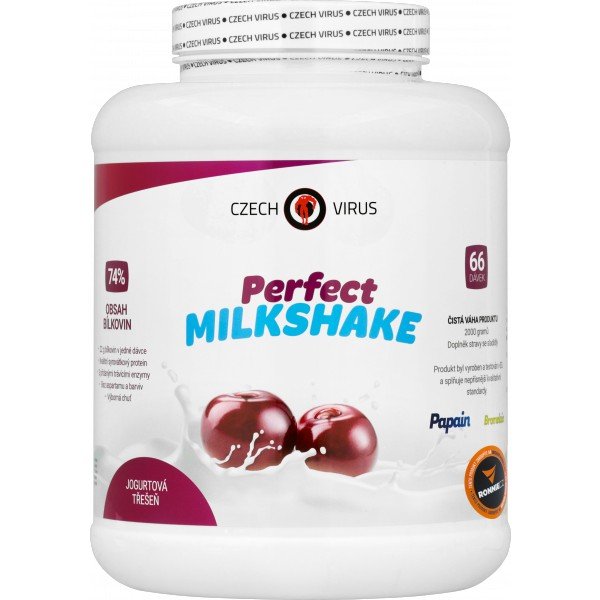 Tento produkt vznikl s vizí nabídnout skvělý základní proteinový produkt hlavně pro hobby sportovce, kteří ocení čisté složení a skvělou chuť. Je vynikající pro doplnění bílkovin do Vašeho jídelníčku a také pro vychutnání mléčného shaku bez nutnosti zhoršování Vašich nutričních standardů. Neuvěříte, že může protein s takovými nutričními hodnotami chutnat jako plnotučný šejk plný cukru. Nabízené příchutě byly laděny naprosto bez nadsázky skoro rok a každá z nich měla několik verzí, než byly použity do finálního produktu. Perfect Milkshake je nejlepší protein v poměru cena/výkon firmy Czech Virus.