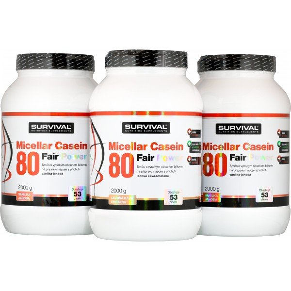 - Micellar Casein 80 Fair Power je vhodný zejména před spaním nebo na svačinu jako pomalu stravitelný zdroj kvalitních bílkovin