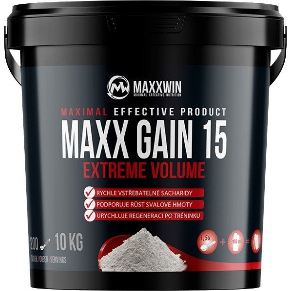 Maxx Gain 15 se řadí mezi gainery s vyváženým obsahem živin. Obsahuje kombinaci mono a polysacharidů, které zajišťují rovnoměrné vylučování inzulínu, a tím dochází k maximálnímu ukládání glykogenu do svalových buněk. Použitím kvalitních bílkovinových zdrojů na bázi koncentrátu syrovátkové bílkoviny WPC je zaručena rychlá stravitelnost a maximální využitelnost v organismu. Obsahuje kreatin. Vhodné pro amatérské i vrcholové sportovce. Neobsahuje aspartam.